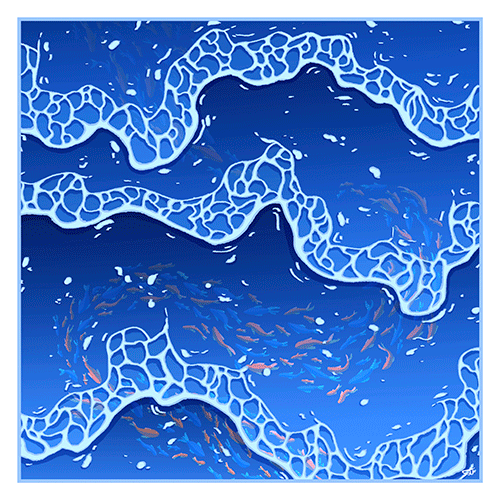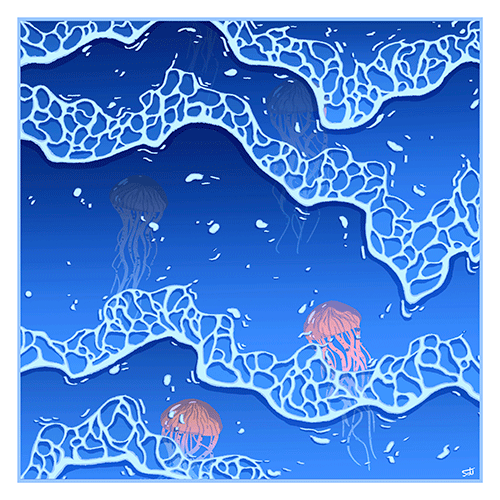 Submission to the exhibition Drawn to Water by Austrian Illustration in 2023. The topic revolved around everything related to water. I submitted an artwork consisting of four individual digital drawings revolving around maritime animals. The drawings can be seen as a long consecutive piece, or as singular pictures.